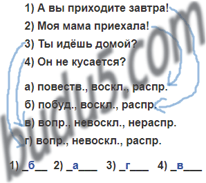 Соедини предложение и его признаки (проведи стрелки, а затем запиши рядом с цифрой нужную букву).