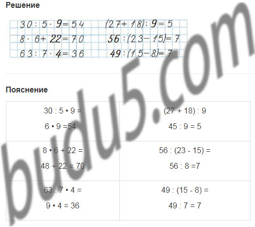 Вспомни порядок выполнения действий при нахождении значения числовых выражений со скобками и без них.