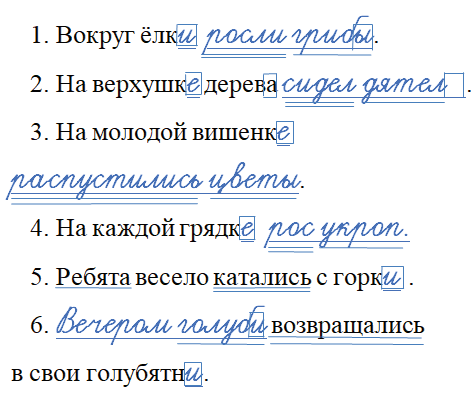 Допишите предложения. Подчеркните главные члены в каждом из них. Выделите падежные окончания имён существительных.