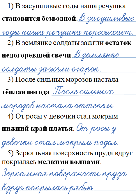Проверьте себя, хорошо ли вы знаете слова русского языка: замените выделенные слова в каждом предложении одним словом. Запишите их.