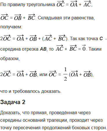 Приведите пример применения векторов к решению геометрических задач.
