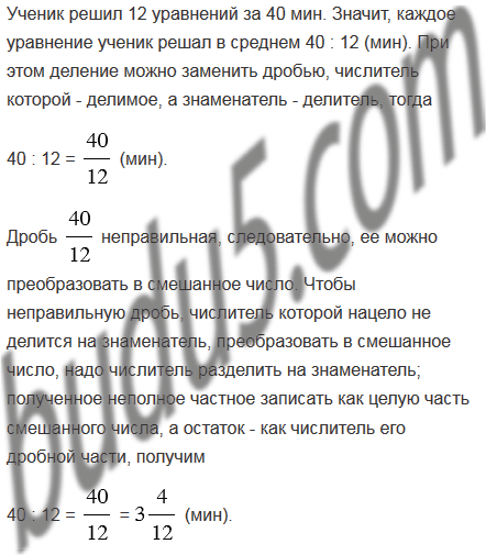 Ученик решил 12 уравнений за 40 мин. Сколько минут в среднем он решал каждое уравнение? Сколько секунд он потратил на решение каждого уравнения?