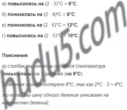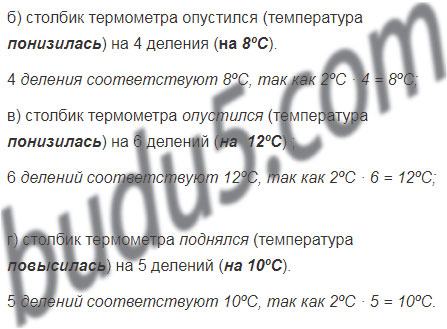 Мальчик отмечал показания термометра вечером и утром. Одно деление шкалы на его термометре составляет 2 градуса. На сколько градусов понизилась или повысилась температура за ночь, если столбик термометра: