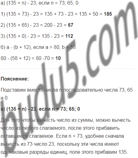 а) (135 + n) - 23, если n = 73; 65; 0;