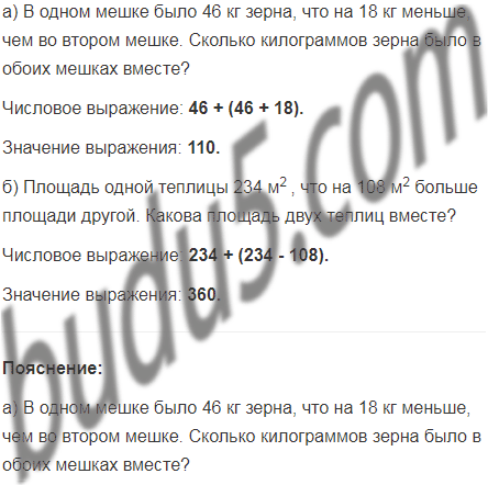 а) В одном мешке было 46 кг зерна, что на 18 кг меньше, чем во втором мешке. Сколько килограммов зерна было в обоих мешках вместе?