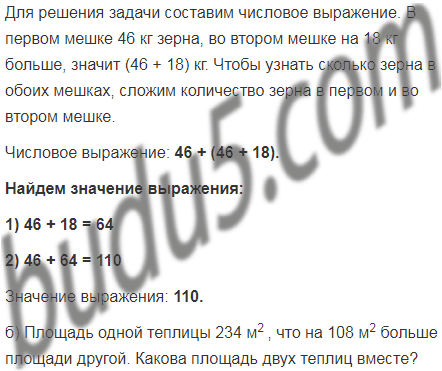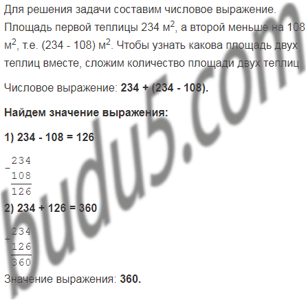 б) Площадь одной теплицы 234 м2 , что на 108 м2 больше площади другой. Какова площадь двух теплиц вместе?