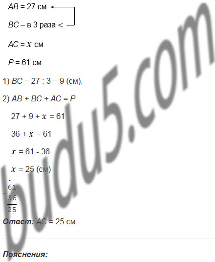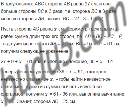 В треугольнике ABC сторона AB равна 27 см, и она больше стороны BC в 3 раза. Найдите длину стороны AC, если периметр треугольника ABC равен 61 см.