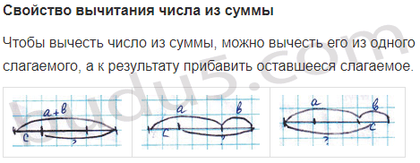 Задание № 6. Какие свойства сложения и вычитания выражают данные равенства? Объясни их смысл, используя графические модели.