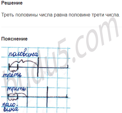 Задание № 13. Что больше: треть половины или половина трети числа? Обоснуй свой ответ.