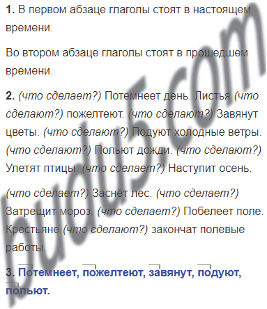 Темнеет день. Листья желтеют. Вянут цветы. Дуют холодные ветры. Льют дожди. Улетают птицы. Наступает осень.