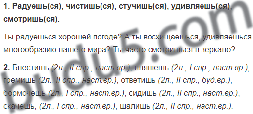 Радуешь, блестишь, пляшешь, гремишь, чистишь, ответишь, стучишь, бормочешь, сидишь, скачешь, шалишь, удивляешь, смотришь.